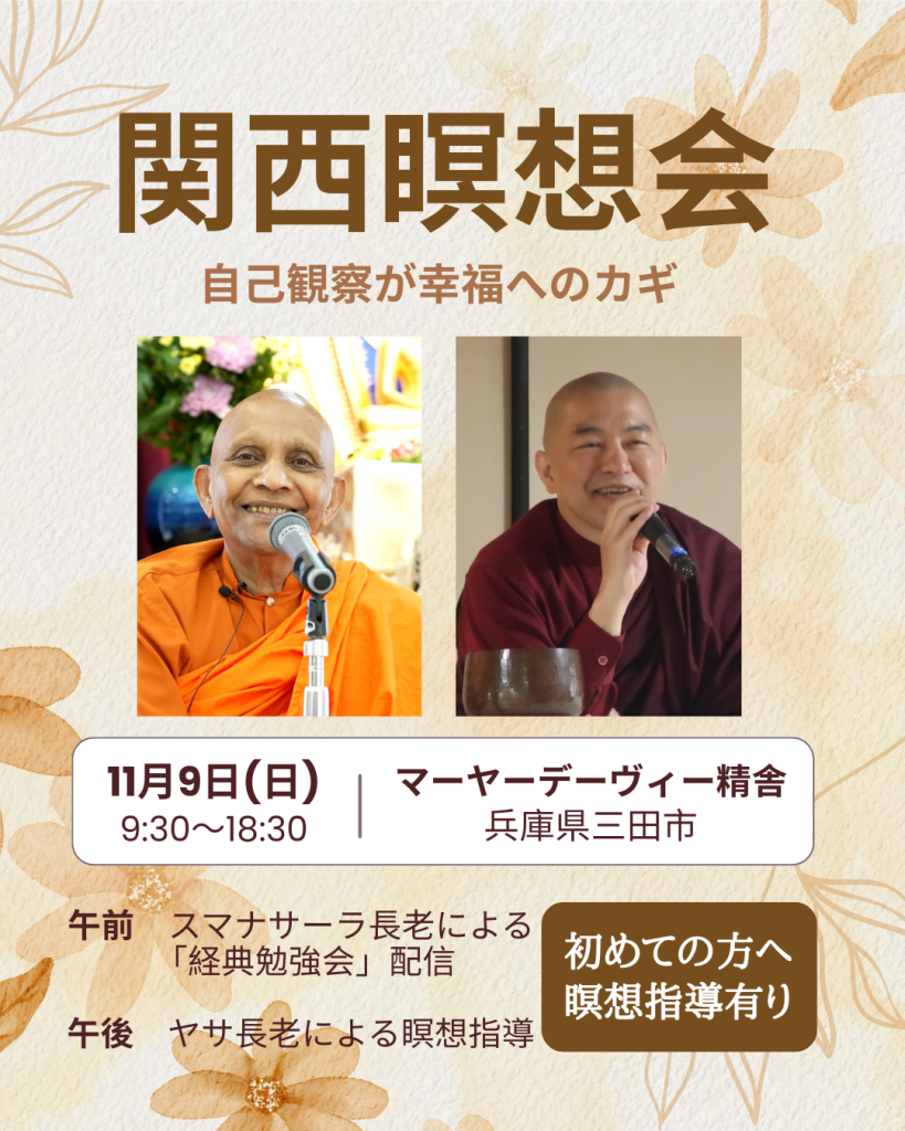 報告|10/18(土)自主瞑想と質疑応答の会・10/19(日)関西瞑想会が無事終了しました