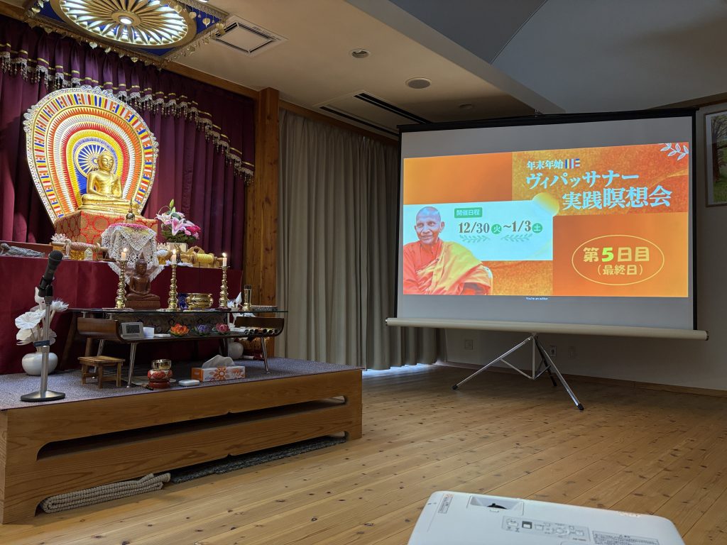 マーヤーデーヴィー精舎で12月28日(日)から行われました「宿泊仏教実践会」が1月3日(土)無事に終了いたしました。参加の皆様、スタッフの皆様、ご協力いただき誠にありがとうございました。皆様のおかげで、年末年始に修行の機会を設けることができました。感謝いたします!